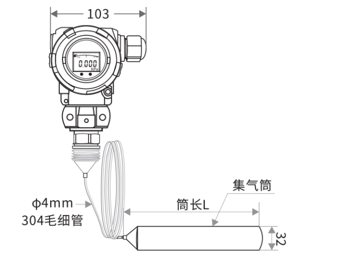 引线方式:Φ4mm 304不锈钢毛细管