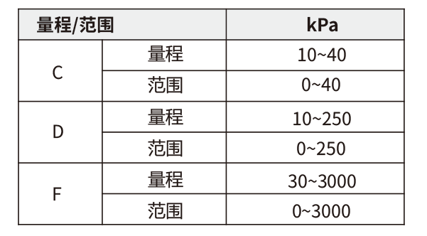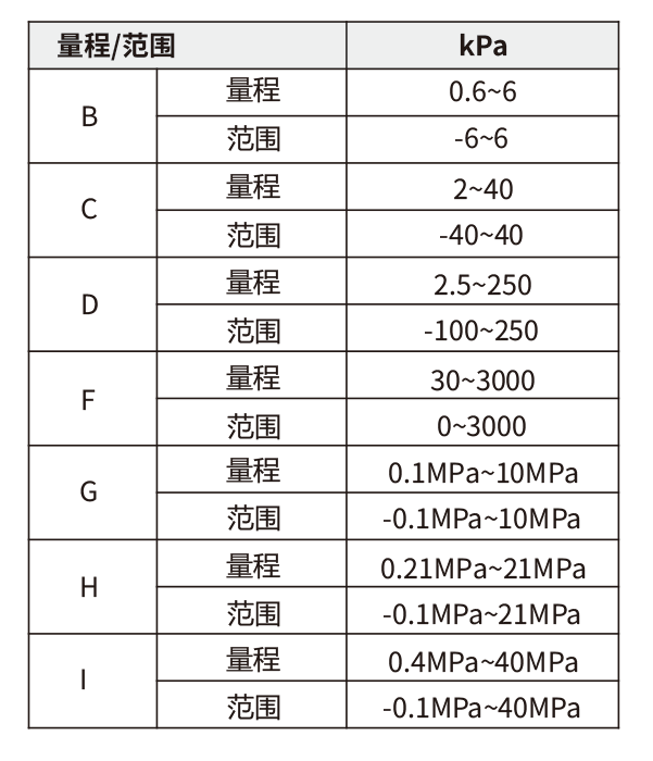零点和量程可以调节到表中测量范围内的任何值,只要标定量程≥最⼩量程