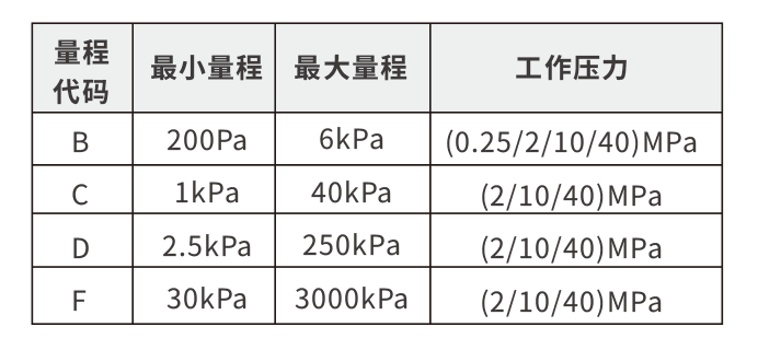 零点和量程可以调节到表中测量范围内的任何值,只要标定量程≥最⼩量程。