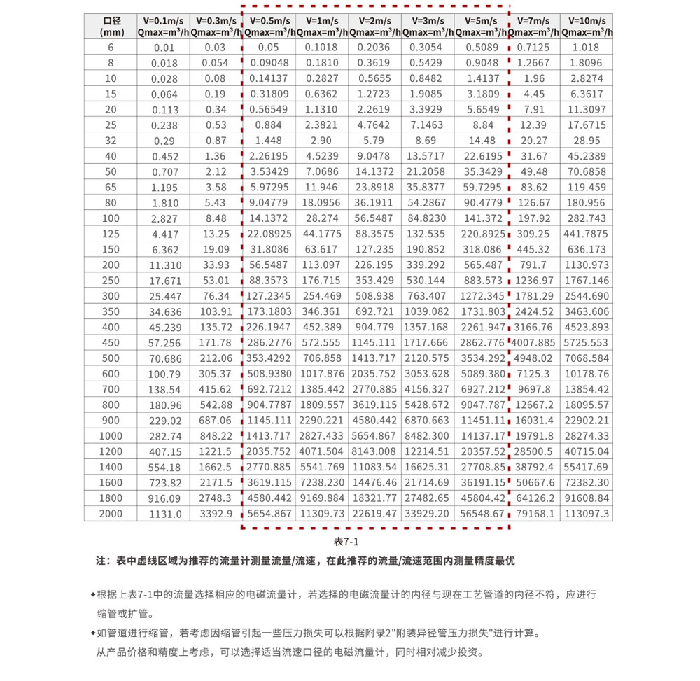 五、流量范围表