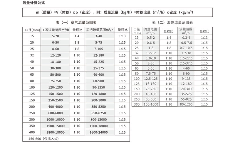 五、流量范围表