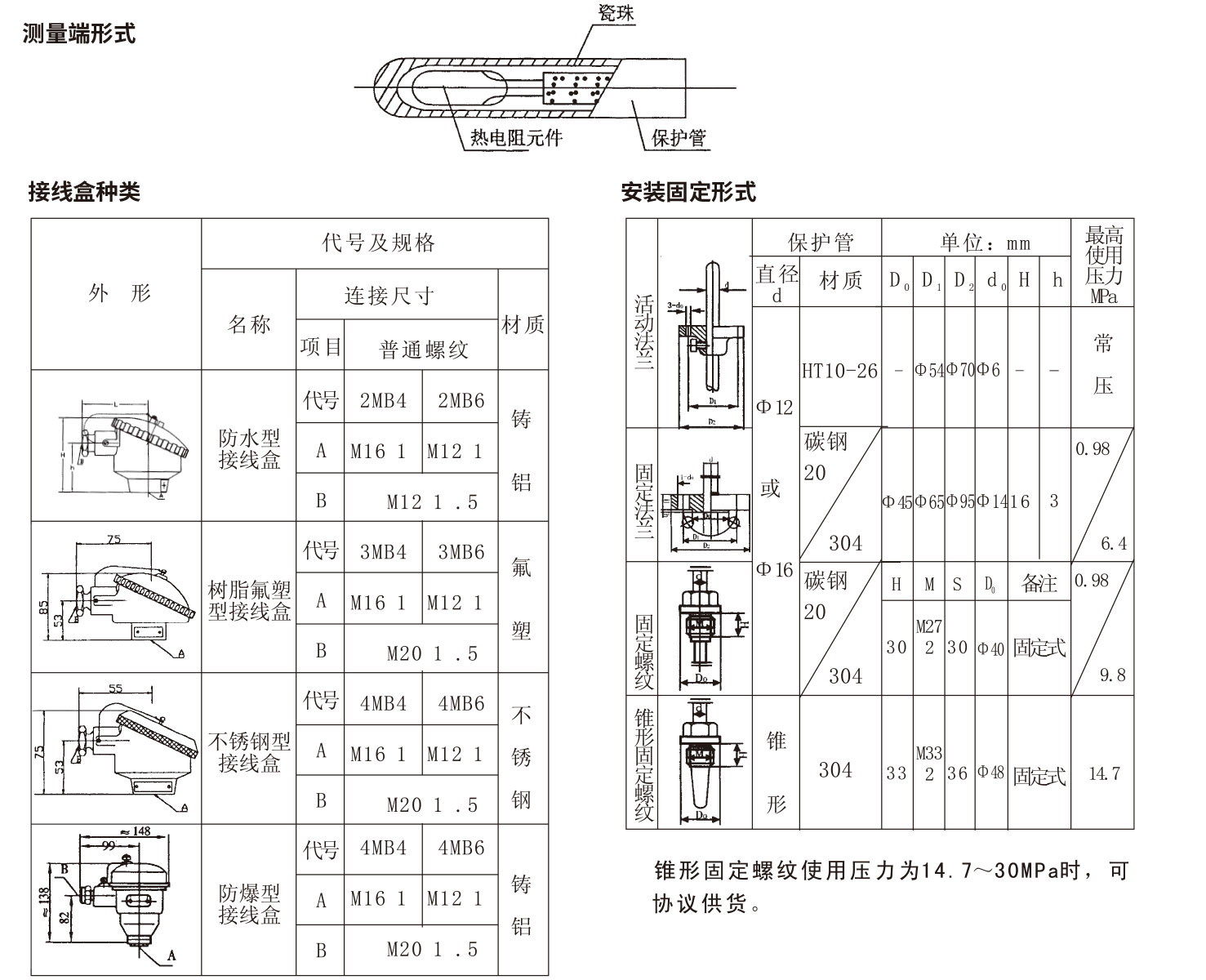 装配热电阻通常由感温元件、安装固定装置和接线盒等主要部件组成。